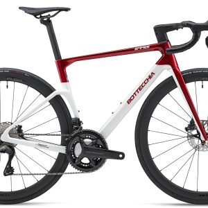 Carbonio UD monoscocca, freni a disco perni passanti, manubrio monoscocca integrato e reggisella areo.