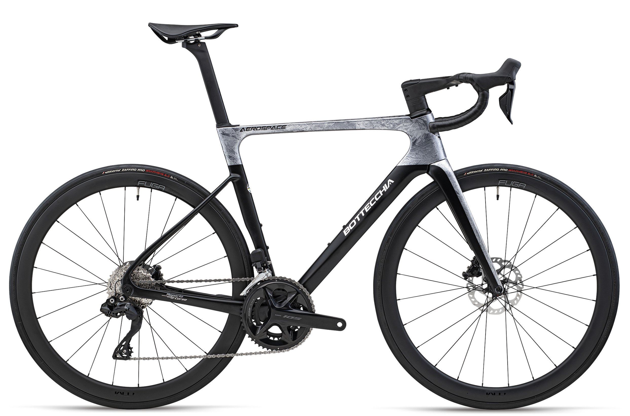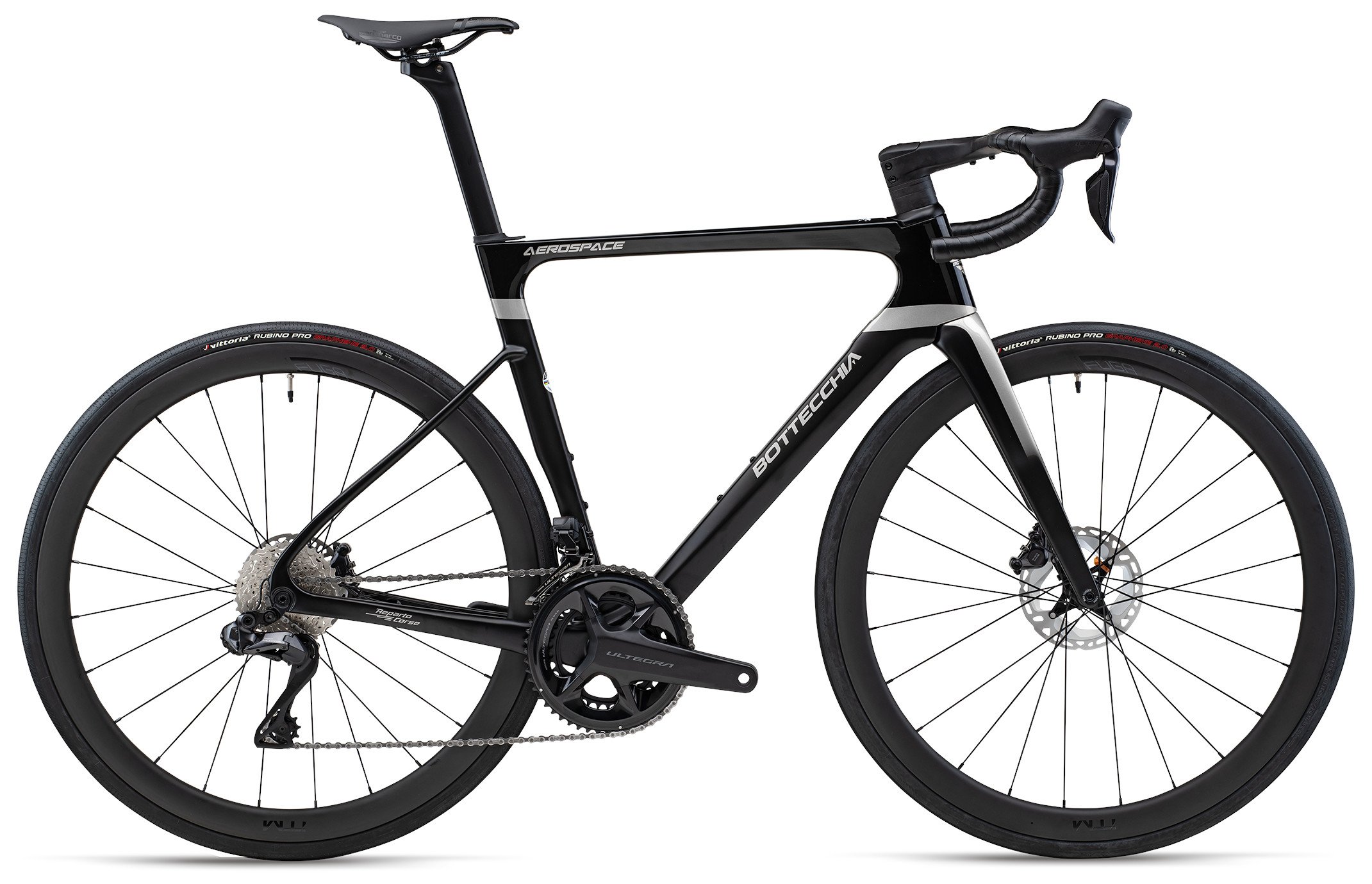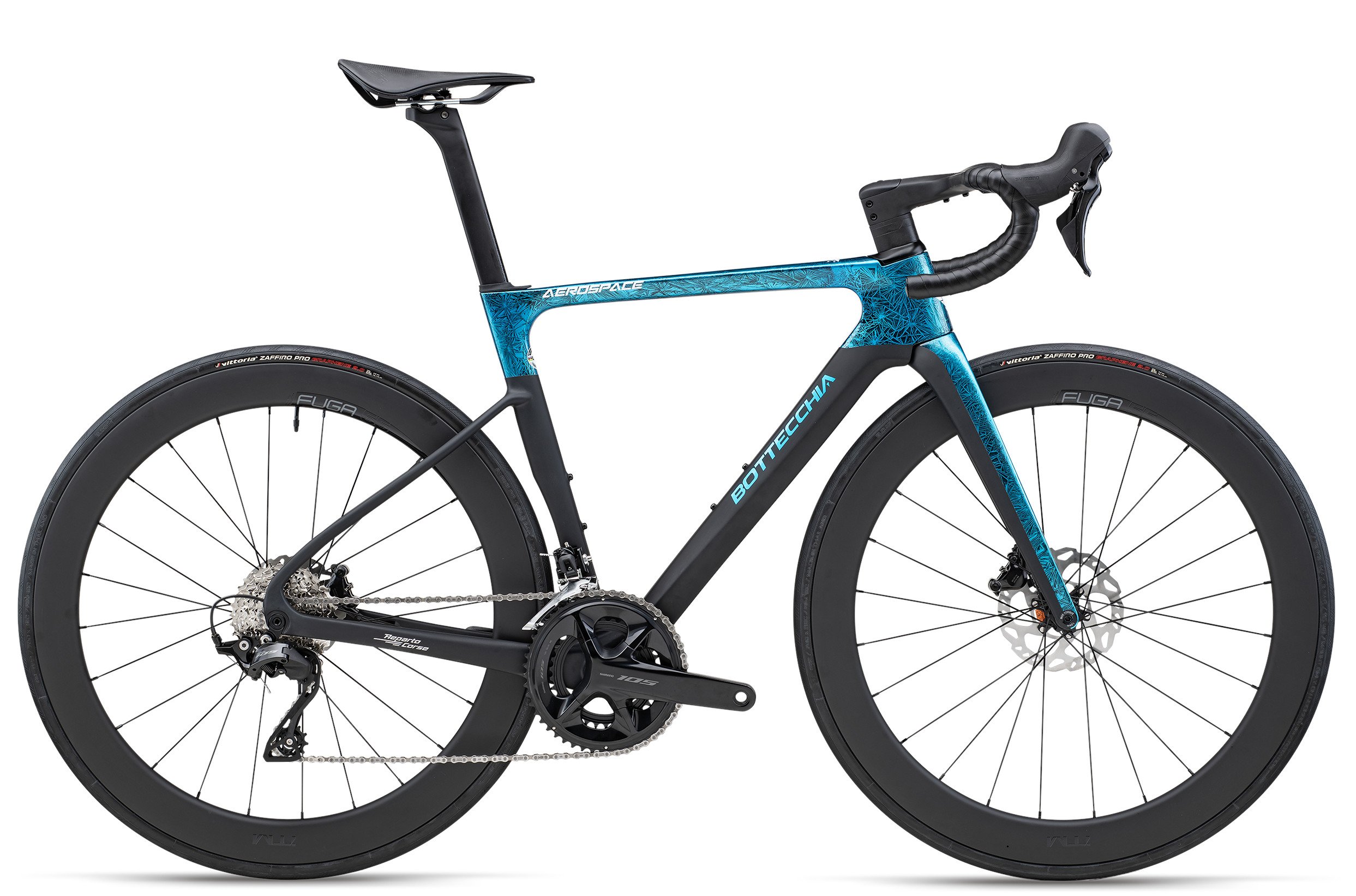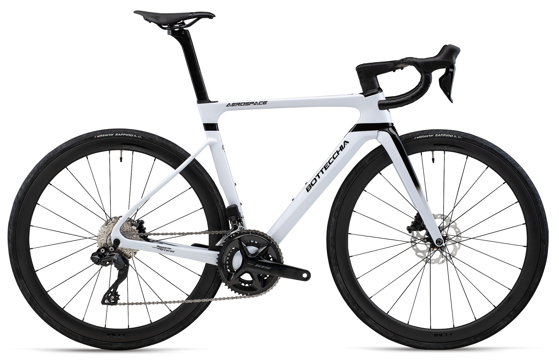 Telaio in carbonio monoscocca Aero, freni a disco perni passanti, reggisella Aero, passaggio cavi integrato.